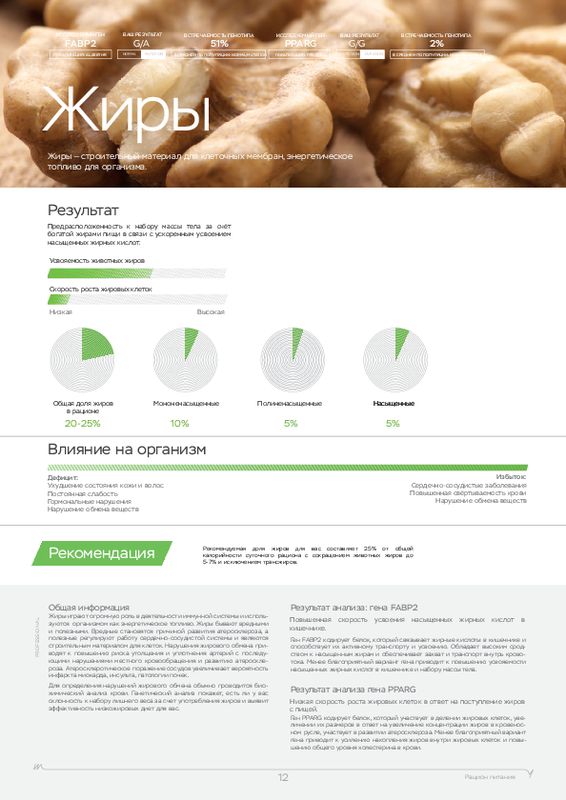Этот ДНК анализ показывает, к каким физическим нагрузкам человек расположен генетически, а также какие продукты (содержащие определенные элементы) лучше употреблять в пищу. У каждого человека свои цели, кто-то хочет просто сбросить лишний вес, кто-то увеличить силу мышц, а кто-то нарастить огромные мускулы. Для получения максимальной отдачи от тренировок мы рекомендуем пройти наш генетический тест для фитнеса в Поворино.